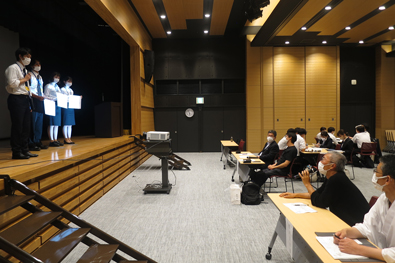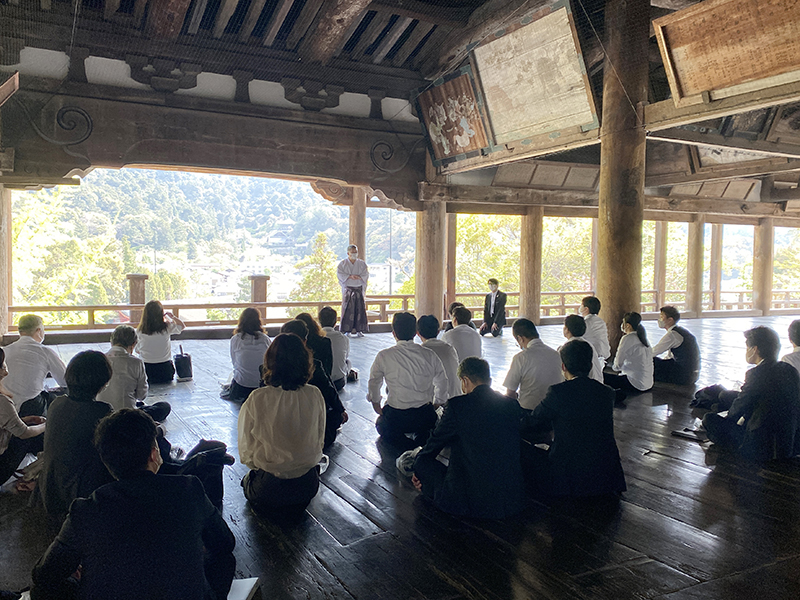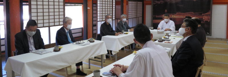 | 嚴島神社宮司・野坂様よりご挨拶(千畳閣にて) |