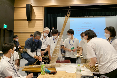 全国から応募し選出される参加学生の決定に先立ち、建築や芸術、環境やデザインを学ぶ学生(学部生・院生)らの提案・制作の指導・補助、材料提供・手配、実施におけるアドバイザー(建築技術者)の皆様に実施の交流を促すため昨年より設けましたこの集まりは、東大寺2020の開催では新型コロナによる影響により、全国へ発令された緊急事態宣言のため実施できず、昨年の明治神宮開催より初めて実施しました。 |